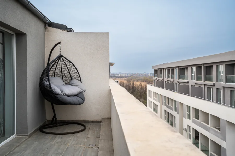 La etajul superior (etaj 7), vei descoperi un dormitor matrimonial de 15.10 mp – un refugiu personal, cald și odihnitor. Al doilea dormitor de 12.60 mp ,este gândit cu flexibilitate – poate fi dressing, birou sau cameră pentru copii, în funcție de nevoile tale. Ai la dispoziție o baie spațioasă de 5.90 mp și un al doilea balcon generos de 10.30 mp, ideal pentru relaxare în aer liber, lectură sau un moment de respiro la final de zi.