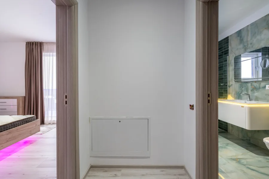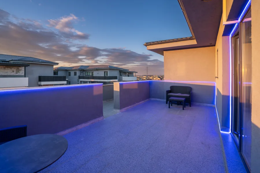 • Terase: Cele două terase – una de 12,30 mp și alta de 20 mp – sunt amplasate în zone diferite ale apartamentului și oferă un spațiu generos de relaxare în aer liber. Acestea sunt ideale pentru a savura o băutură în aer liber, a citi o carte sau a organiza o mică petrecere cu prietenii.
