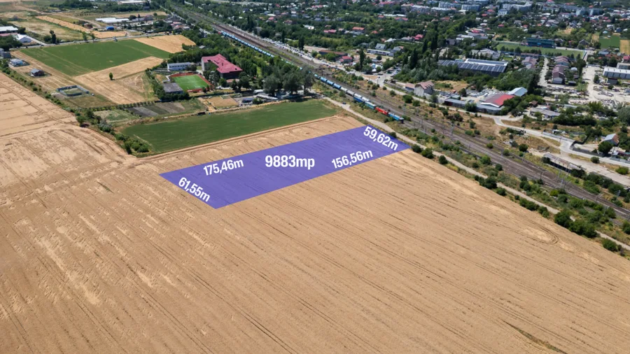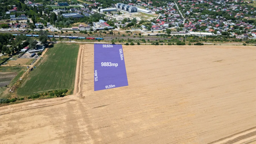 Deschidere generoasă – 59.62 ml | Suprafață totală – 9.883 mp | Zonă industrială în dezvoltare | Urbanism avantajos